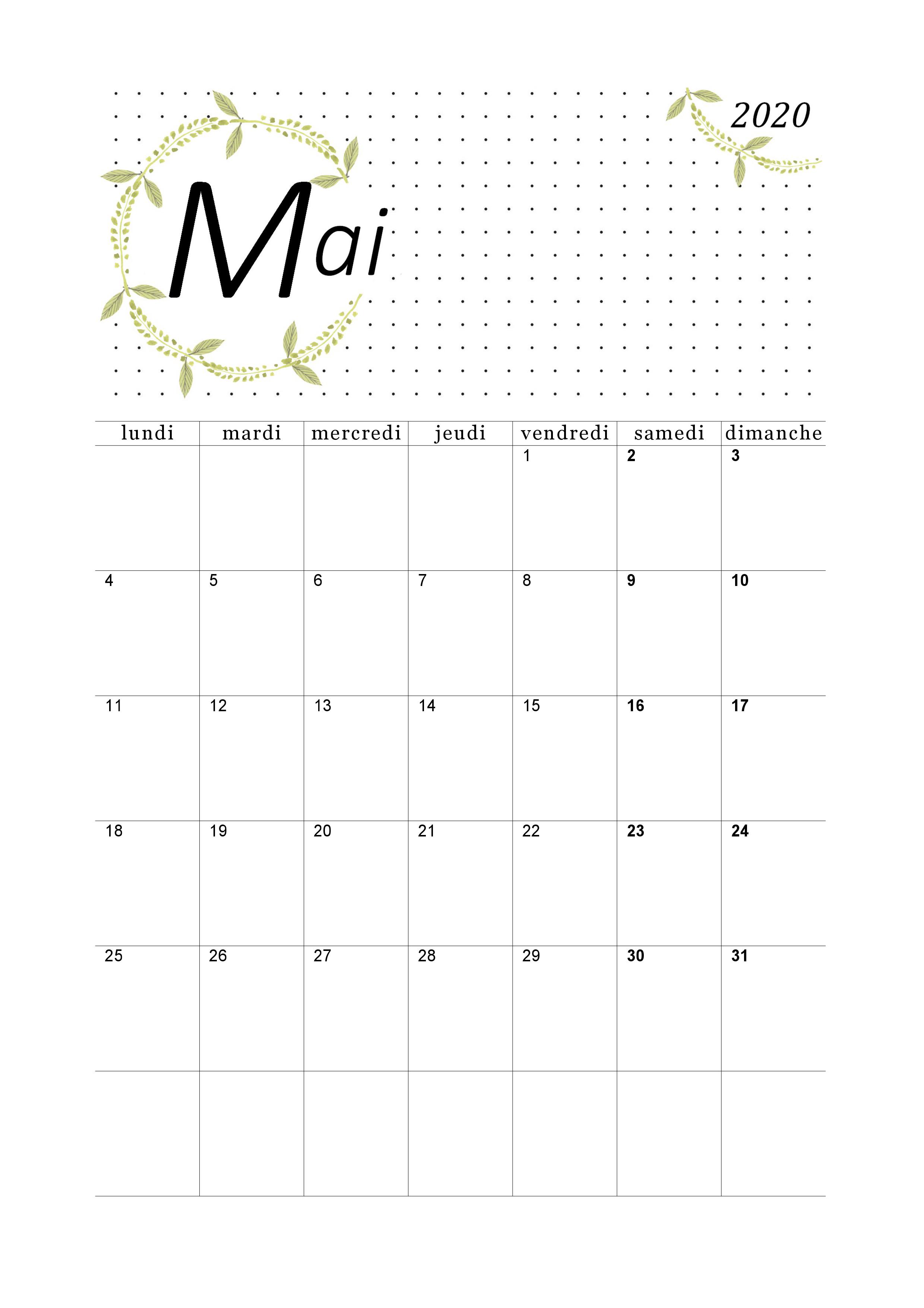 Calendrier A Imprimer Gratuit 2020 Mois Par Mois